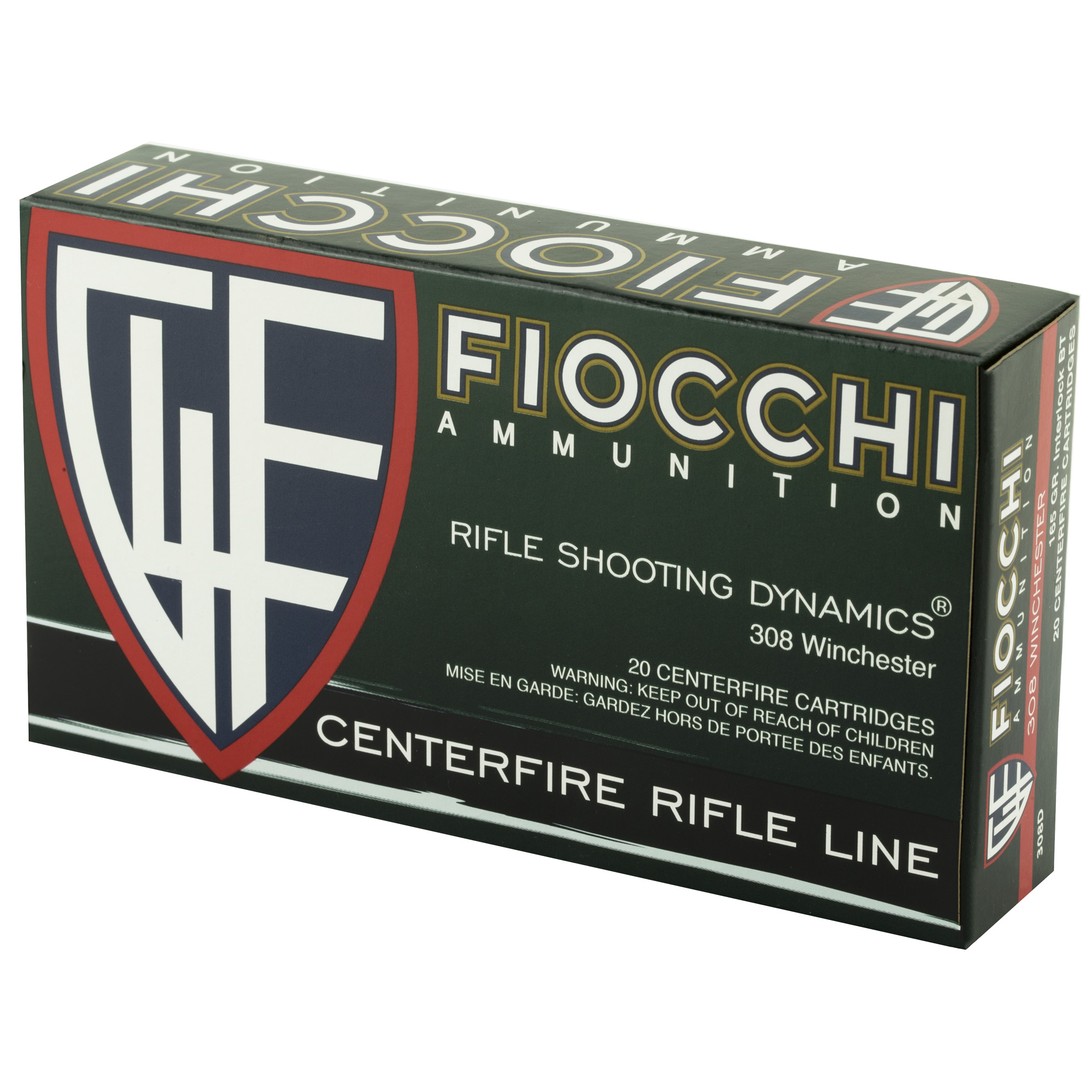 Fiocchi Ammunition Rifle, 308WIN, 165 Grain, InterLock Boat Tail Soft Point, 20 Round Box 308D
